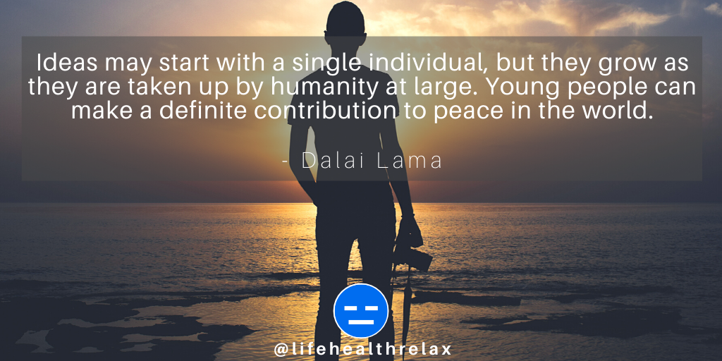 Ideas may start with a single individual, but they grow as they are taken up by humanity at large. Young people can make a definite contribution to peace in the world."The 14th Dalai Lama (religious name: Tenzin Gyatso, shortened from Jetsun Jamphel Ngawang Lobsang Yeshe Tenzin Gyatso; born Lhamo Thondup, 6 July 1935) is the current Dalai Lama. Dalai Lamas are important monks of the Gelug school, the newest school of Tibetan Buddhism which was formally headed by the Ganden Tripas. From the time of the 5th Dalai Lama to 1959, the central government of Tibet, the Ganden Phodrang, invested the position of Dalai Lama with temporal duties." Source: Wikipedia